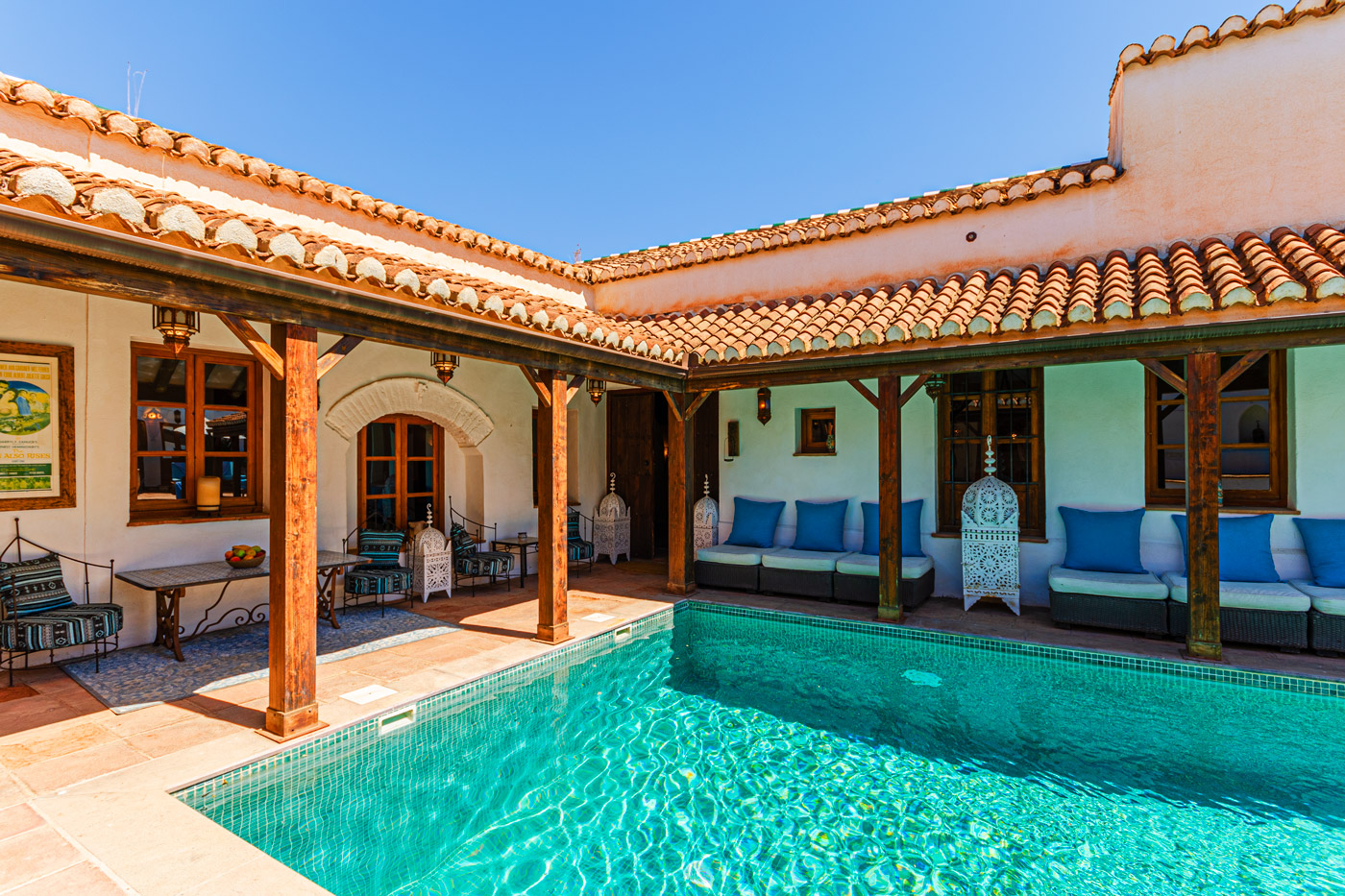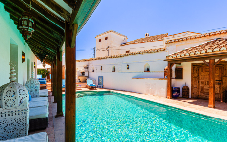 Impresionante molino restaurado en un pueblo tradicional del Valle de Lecrín, entre Granada capital y la Costa Tropical. Esta propiedad de estilo marroquí está toda distribuida alrededor de un patio con una piscina de buen tamaño. Un buen lugar para hacer barbacoas, relajarse y tomar copas por la noche en el patio. Capacidad para 8 personas