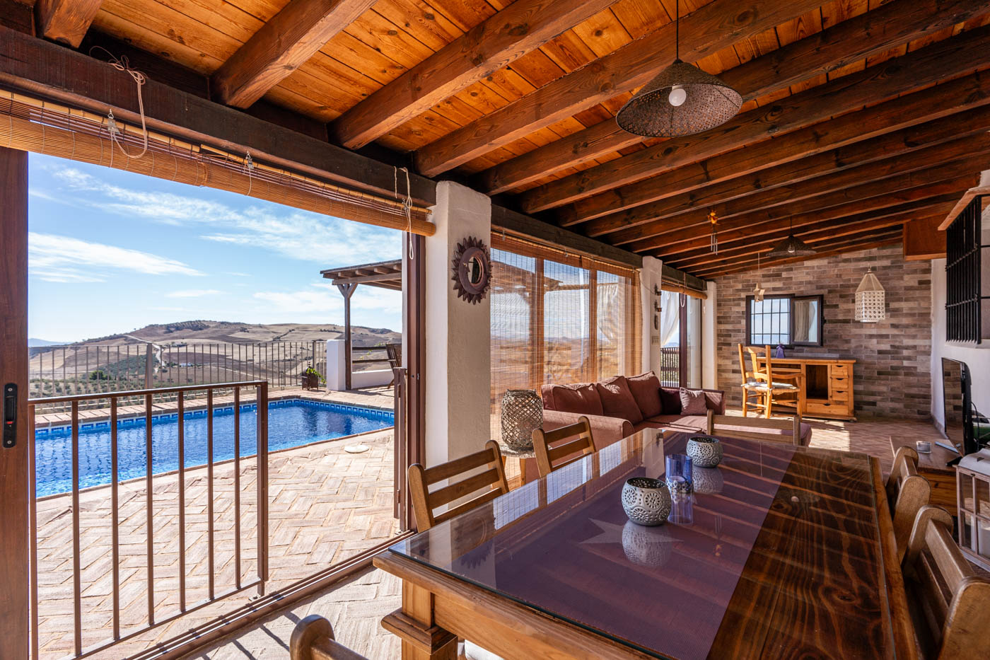 The villa is very well equipped and comfortable with incredible views and in a great location. The swimming pool is excellent and the layout of the property has been very well thought out to be extremely versatile whatever the weather. Excellent information folder. There are lovely villages to explore fairly near and a trip up to the amazing El Gastor is well worth while. Quite a few local restaurants but not always open for much of the week but BBQ and cooking facilities are very good. Although there is no air-con, the mountain breeze keeps the villa cool. The only occasional downside were the local packs of dogs in the vicinity who can create quite a cacophony at times but overall, we thoroughly enjoyed our stay and a special thank you to Coquie and Ramon who were always very helpful and keen to ensure evrything went smoothly while we were there."