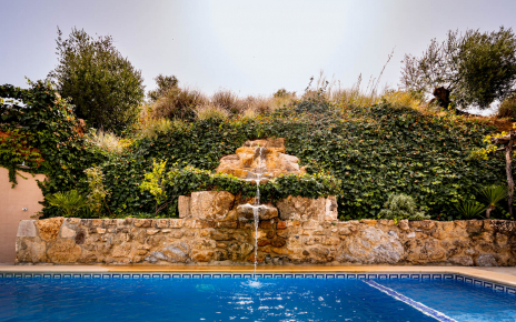 Si bien es cómoda por dentro, también se ha pensado en los exteriores: las terrazas alrededor de la propiedad ofrecen innumerables oportunidades para disfrutar de la vida al aire libre, sin mencionar la deliciosa piscina, con el detalle de una fuente encantadora, con la que los niños disfrutarán lo indecible. Por cierto, si viene con niños pequeños, la piscina cuenta con un pequeño espacio poco profundo para ellos.