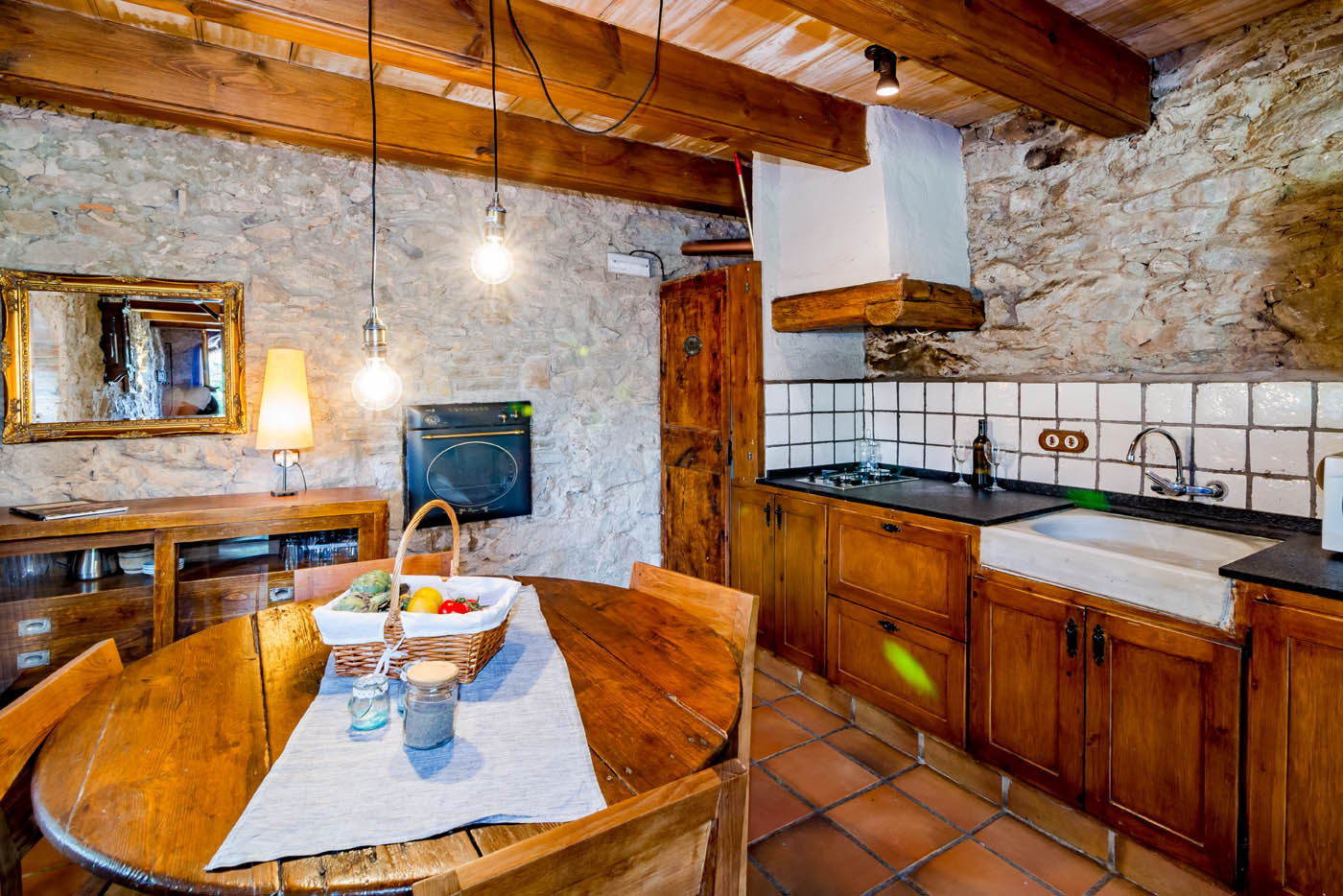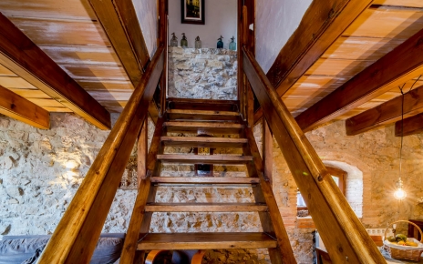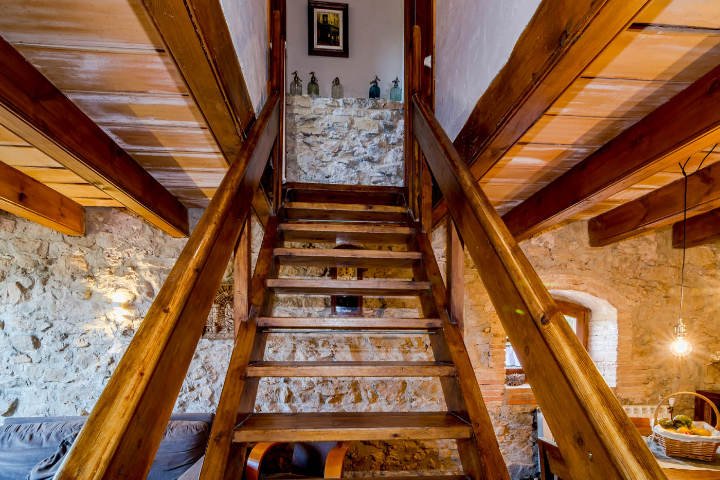 Esta casa es rústica y llamativa, ocupa dos pisos de una masía, así llamadas las casas de campo de Cataluña. (También ofrecemos la propiedad más grande de 4 dormitorios con ref CA20).