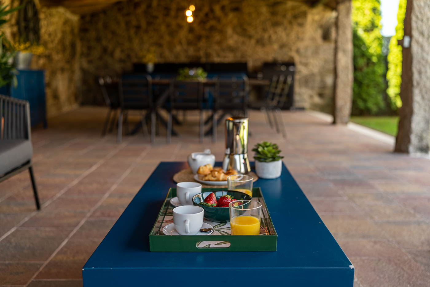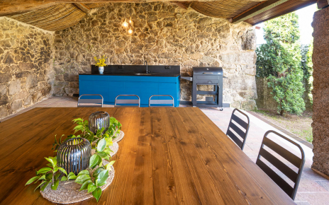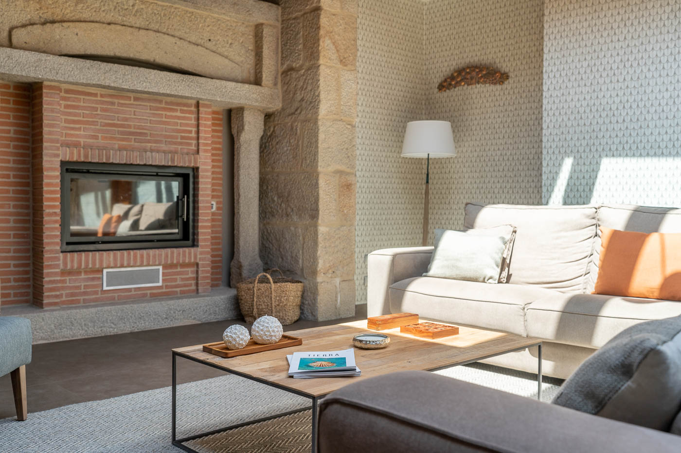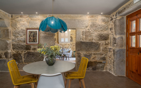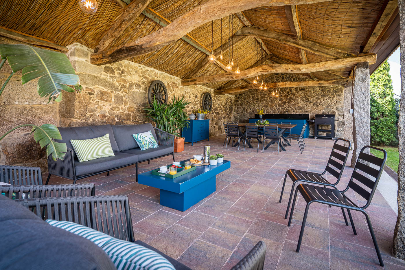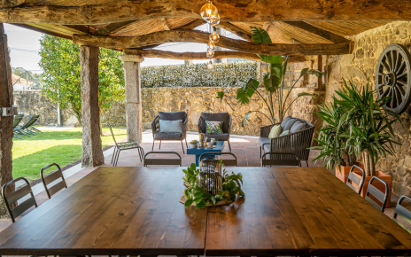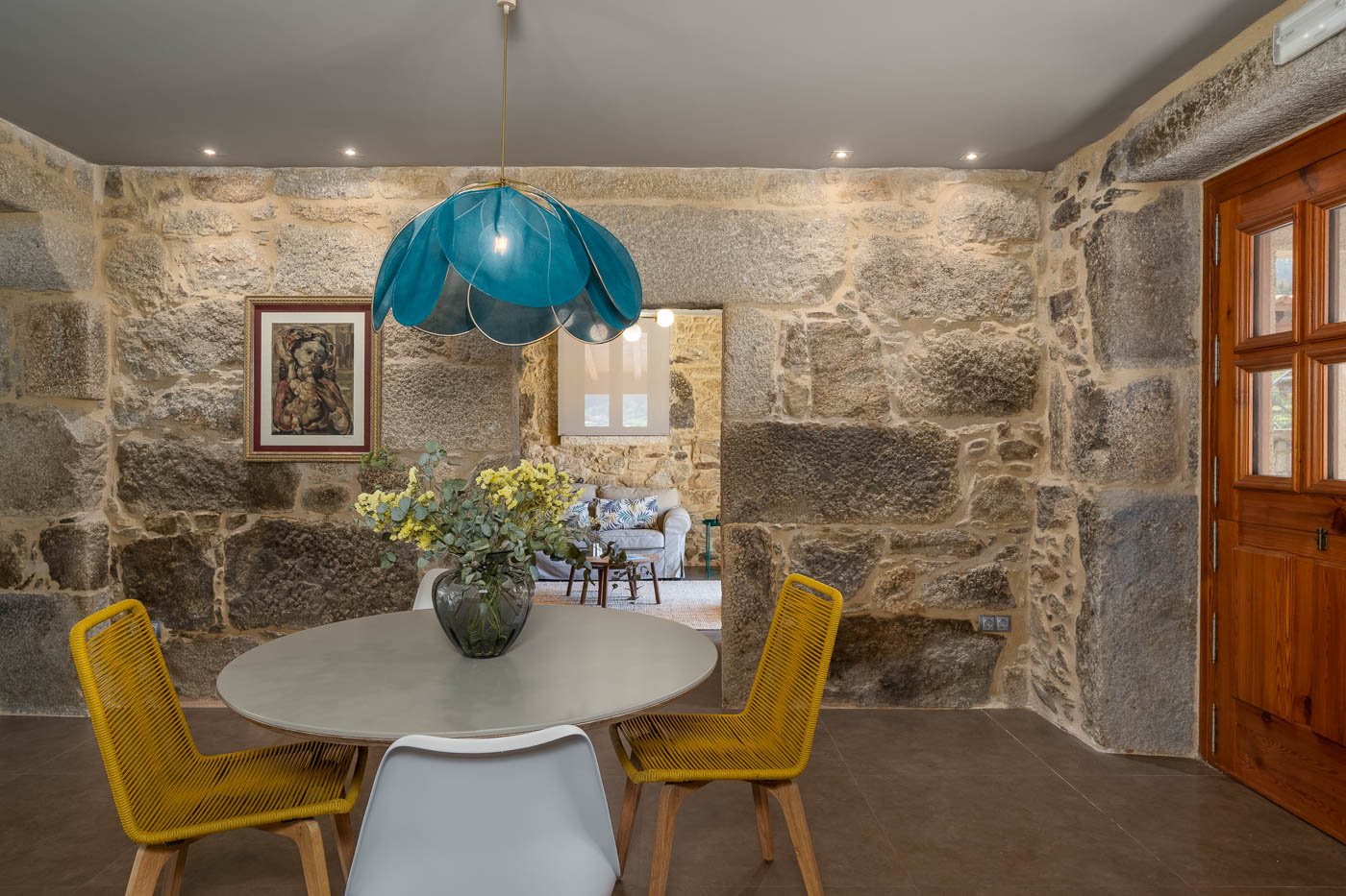 Es precisamente la amplitud de los espacios interiores lo que más nos llamó la atención en nuestra visita a esta casa tradicional de piedra gallega. El elegante salón que cuenta con techo acristalado es un espacio alegre y acogedor. El porche exterior con mobiliario y zona de relax tampoco desmerece mencionarse como un espacio irresistible para disfrutar en familia o con amigos.