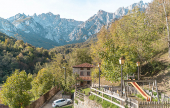 Casa de piedra con jardines privados en pueblo de Picos de Europa