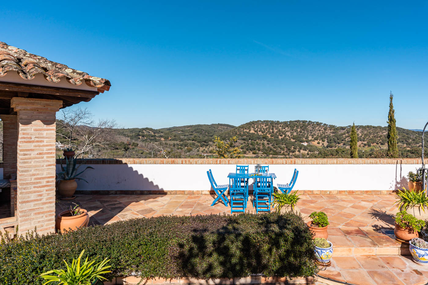 A driveway through chestnut trees sweeps round to reveal this excellent, L-shaped villa. The property covers 25 acres of grounds and looks out across the fertile valley of Fuente del Rey: what one client called "heart-stopping views".