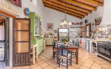 In classic Andalusian style, the main room has been left open-plan, an archway dividing off a very comfortable lounge from the dining area and kitchen. Ceilings are high-beamed and sunlight filters through from the outside to present the nicely chosen furniture and decoration in what feels like a freshly laundered atmosphere.