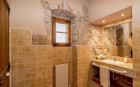 This old stone farmhouse is adorned with cheery yellow walls, exposed brick and beam, and warm terracotta colors. The house boasts plenty of curves and magical corners set out across two floors with four attractive bedrooms.