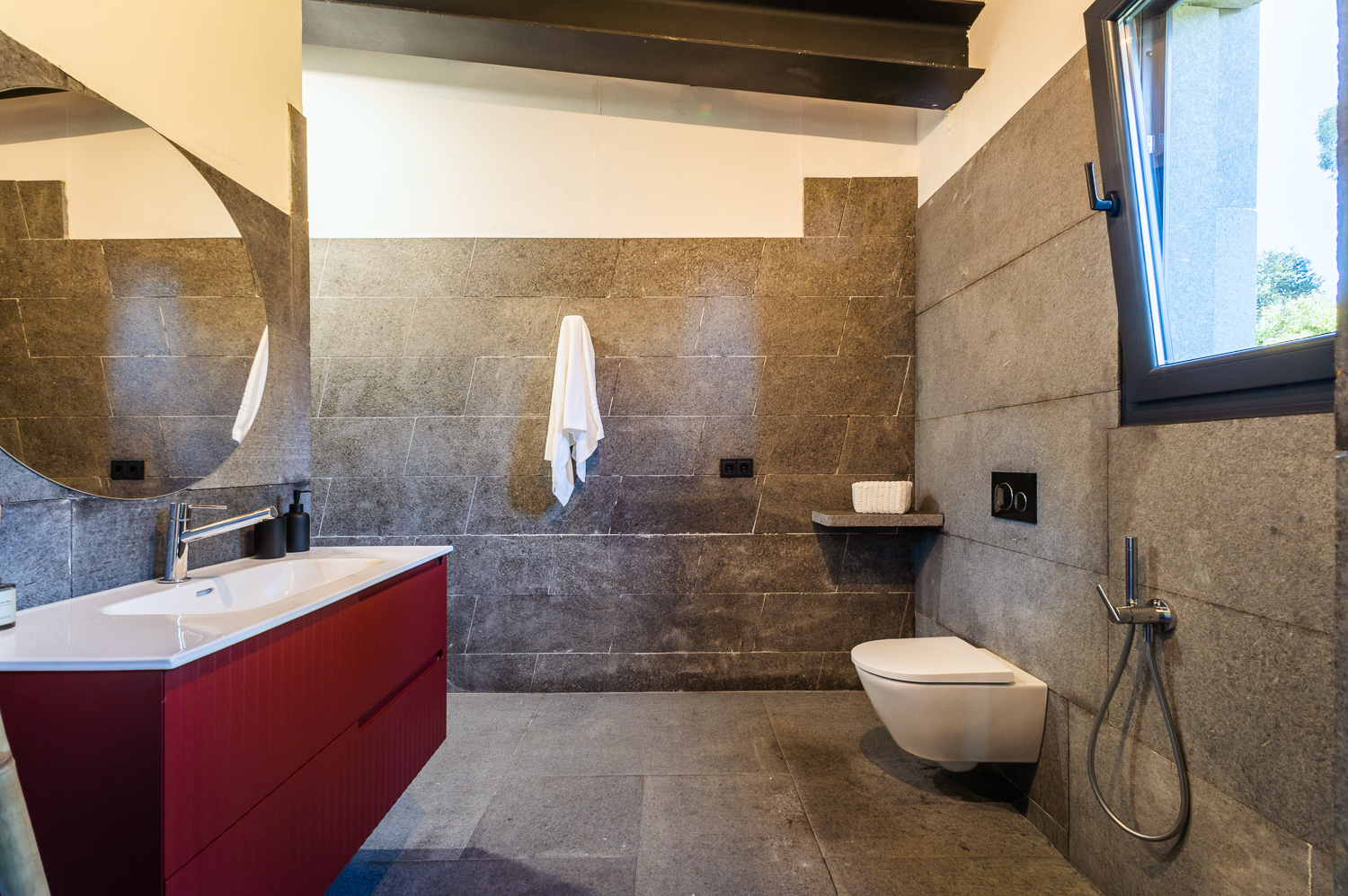 Outdoors, the west-facing terrace and pool area are designed for relaxation and unforgettable sunsets. The heated pool is one of the villa’s most remarkable features: the owner’s electric system maintains the water at around 29ºC even in winter — something rare for an uncovered pool in Northern Spain.