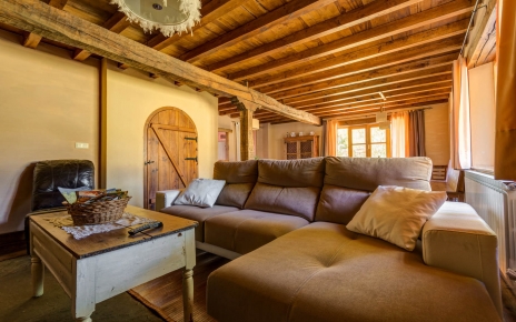 Although the house belongs to the village, the countryside starts right outside, starting with the gardens, which have a barbecue area and even a small sauna, then connect directly to the mountainside.